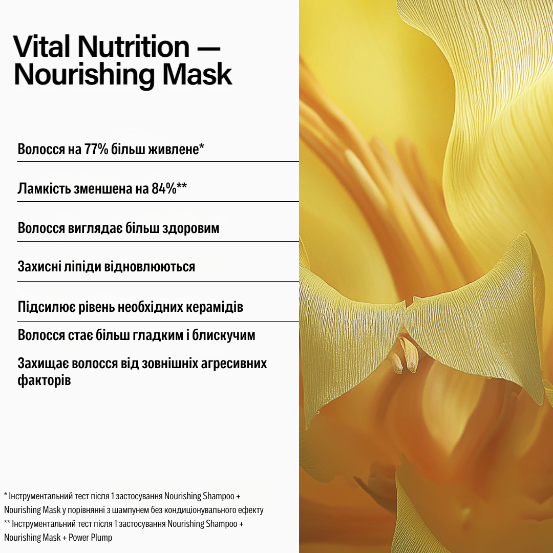 Keune Care Vital Nutrition Mask — інтенсивна маска для сухого або втомленого волосся, яка живить, відновлює м’якість, зменшує пушіння й повертає шовковистий блиск, не обтяжуючи пасм.