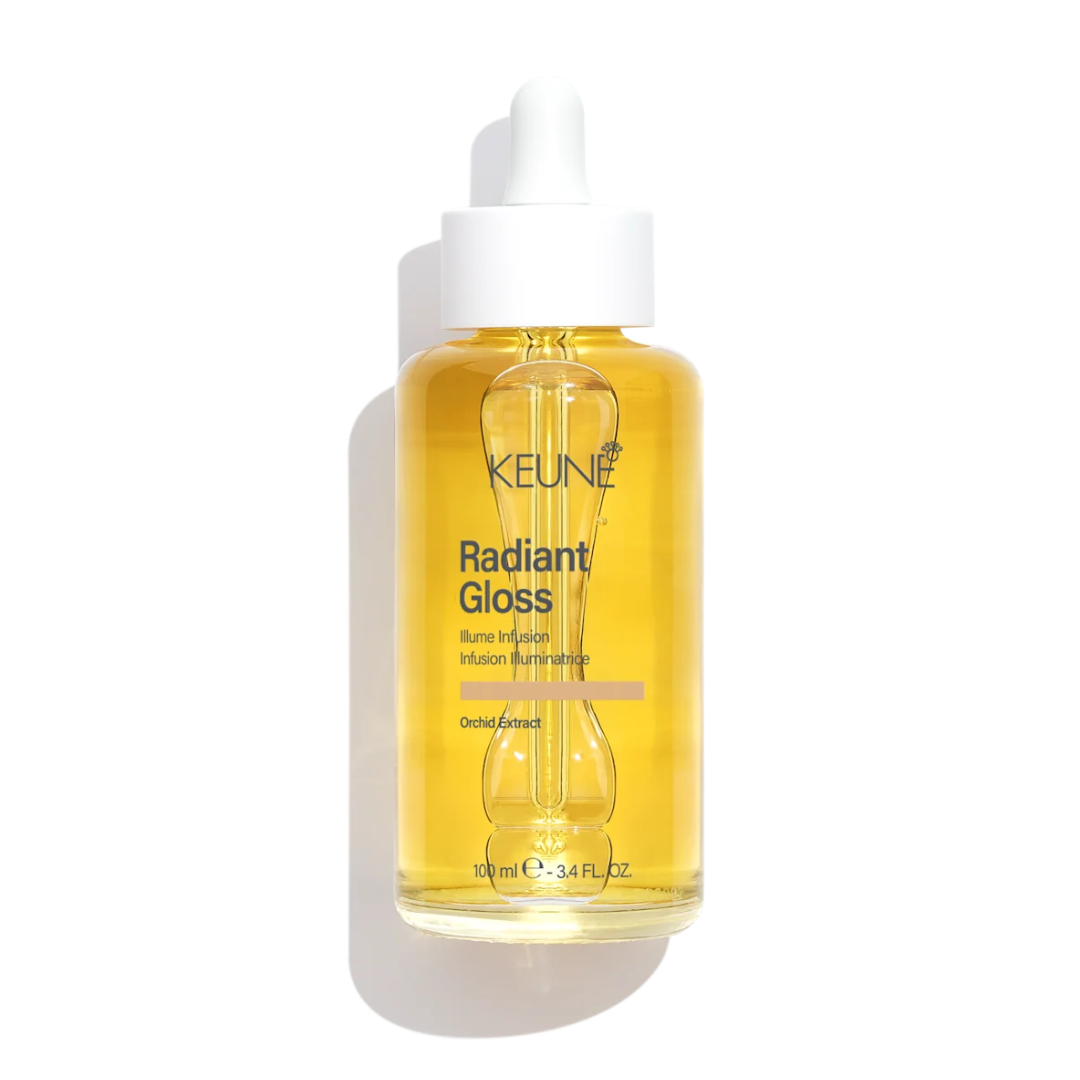 Keune Care Radiant Gloss Illume Infusion — це професійна незмивна сироватка для тьмяного волосся з термозахистом, яка надає сяйво, робить волосся м’яким і гладеньким, захищає від пошкоджень під час укладки феном чи стайлерами. Легка формула збагачена екстрактом орхідеї та олією мікроводоростей, що живлять та відновлюють пасма, не обтяжуючи їх.