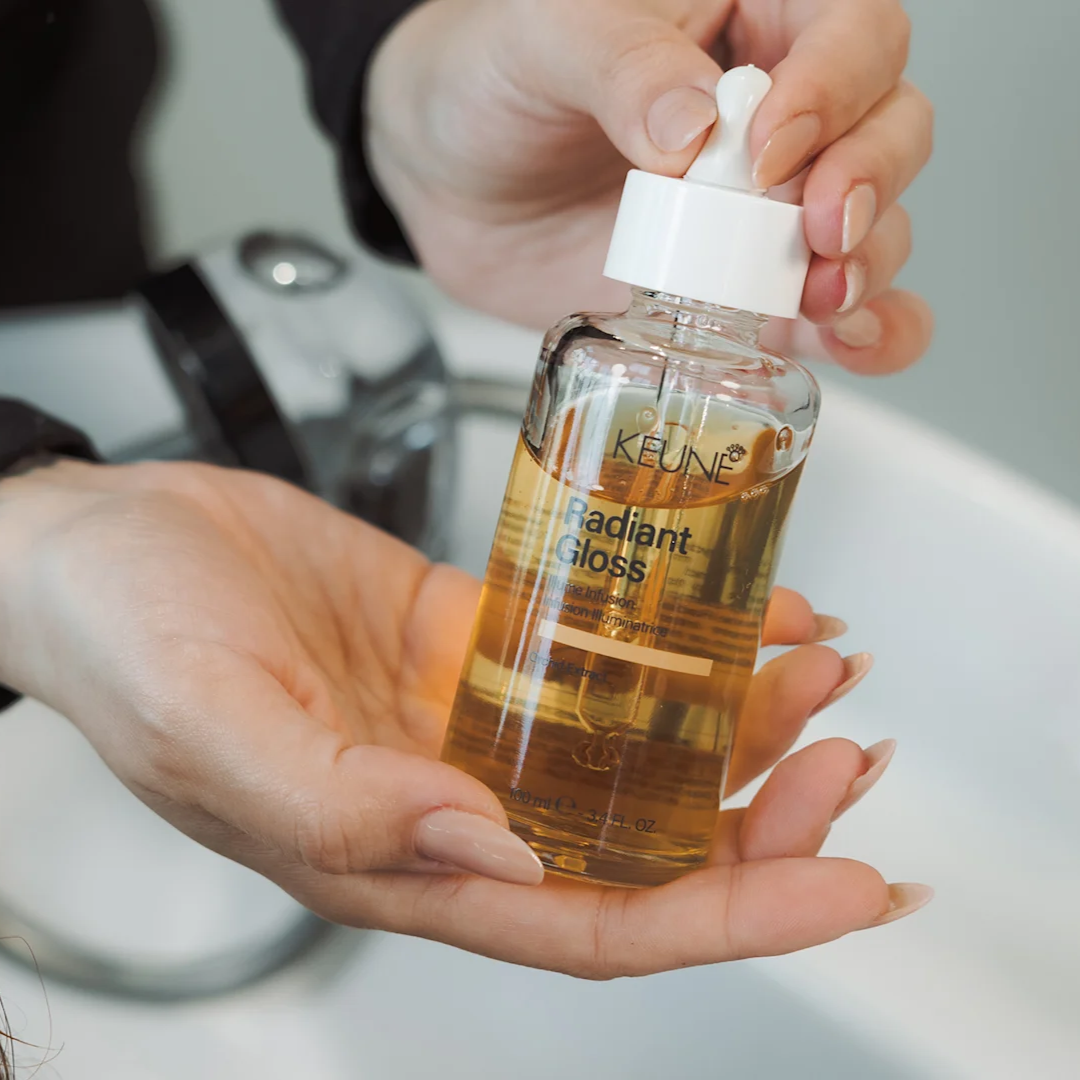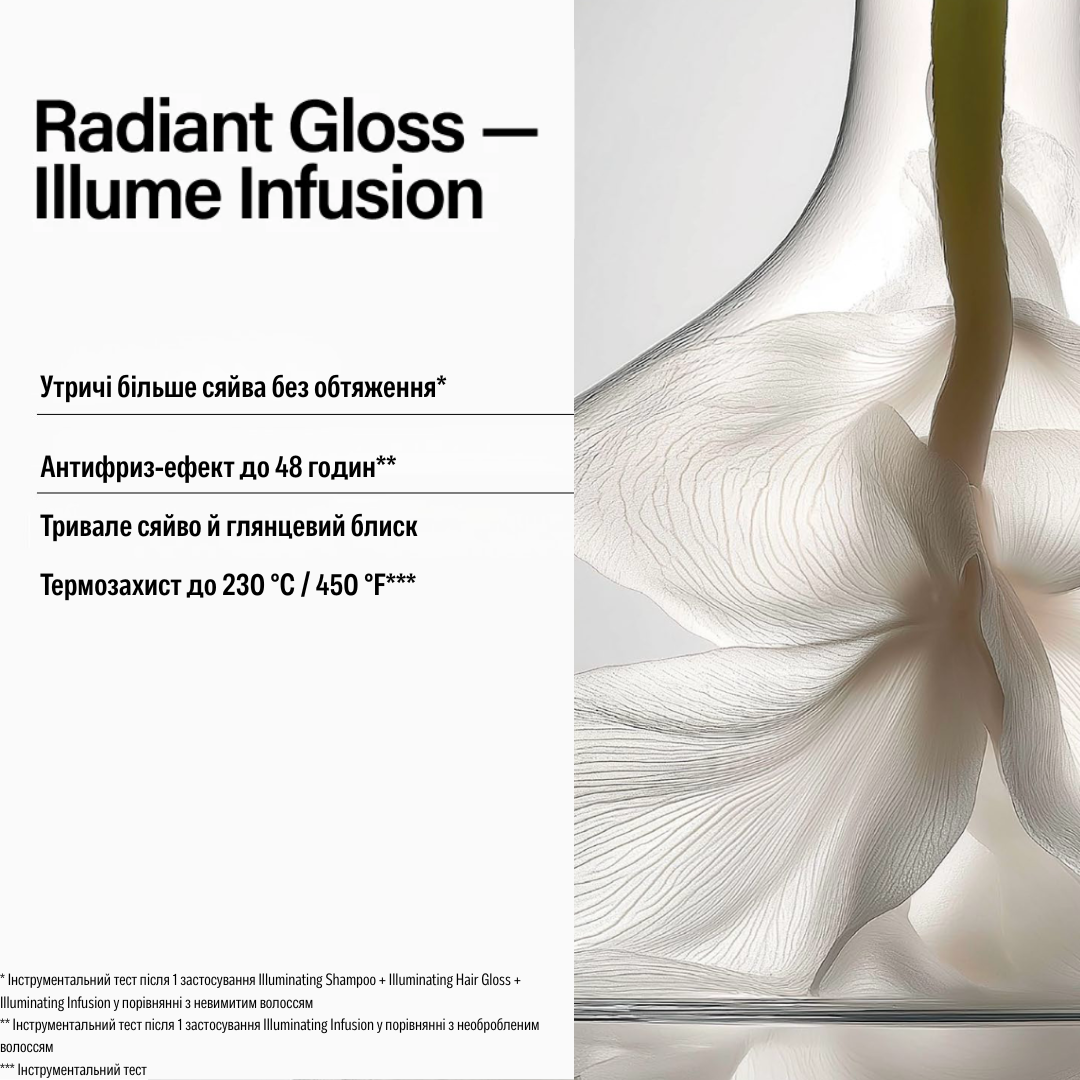 Keune Care Radiant Gloss Illume Infusion — інтенсивний догляд і захист для тьмяного волосся. Легка незмивна сироватка розроблена для того, щоб відновити природне сяйво, додати шовковистості та забезпечити термозахист при використанні фену, прасок чи плойок.