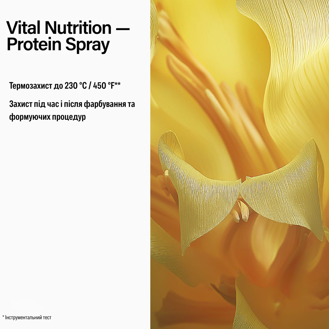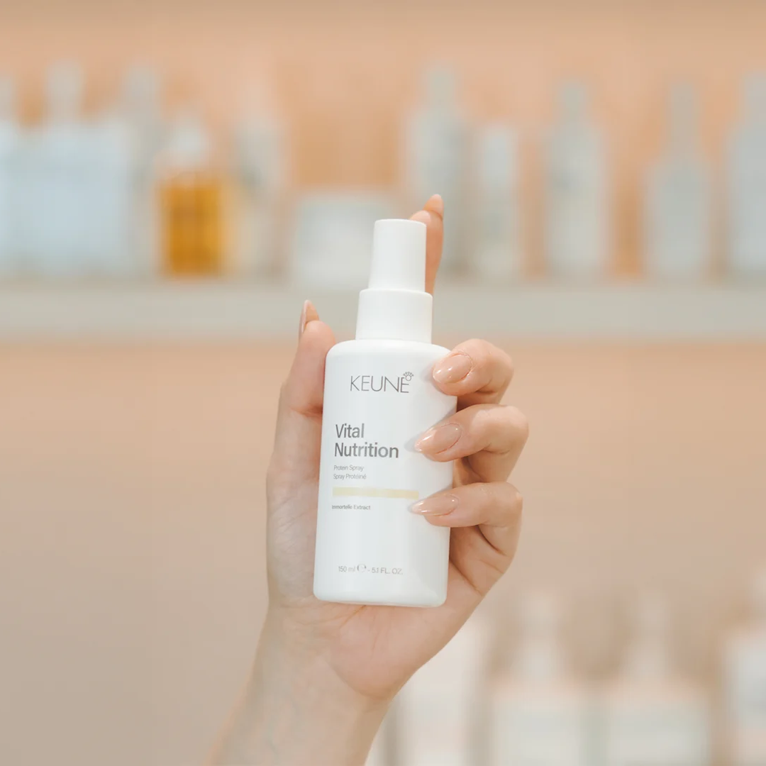 Keune Care Vital Nutrition Protein Spray — це професійний незмивний протеїновий спрей з термозахистом, який живить, зволожує і зміцнює волосся. Допомагає розплутати й розгладити пасма, зменшити ламкість і надати волоссю шовковистість та блиск без обтяження.