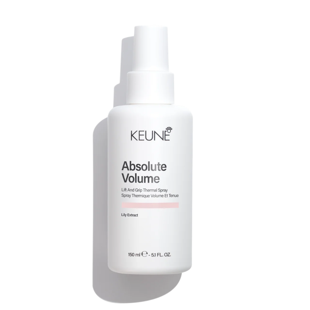 Keune Care Absolute Volume Spray — спрей для надання об’єму тонкому та плоскому волоссю. Містить гідролізований протеїн рису, провітамін B5 та екстракт білої лілії для зволоження та зміцнення волосся, не обтяжуючи його.